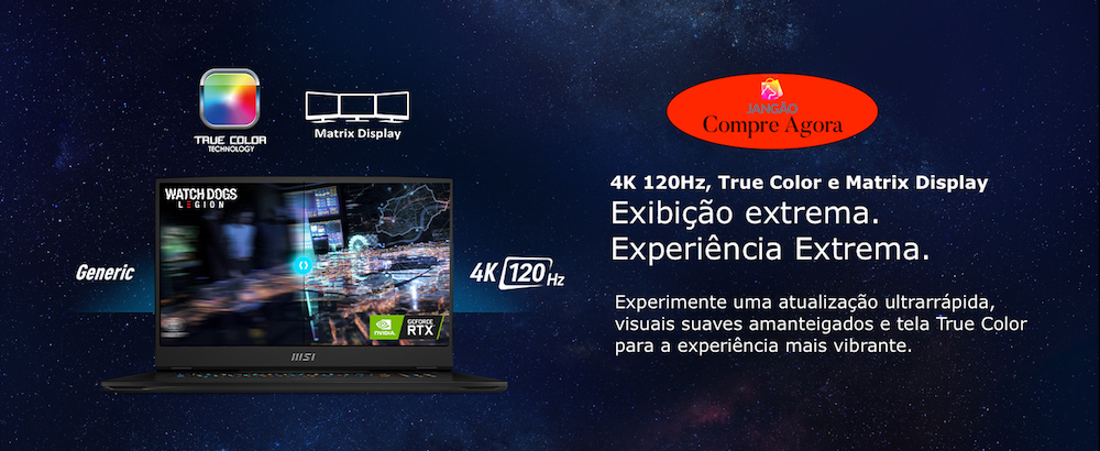 A placa de vídeo dedicada NVIDIA GeForce RTX 3070 Ti com 8 GB de VRAM GDDR6 permite que você aproveite ao máximo a tela de 17,3", que possui resolução UHD 4K 3840 x 2160 e taxa de atualização de 120 Hz.