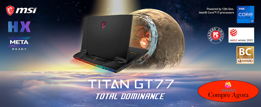 Início>Informática>Notebooks>Gaming Laptop>MSI 17.3" GT77 Titan Gaming Laptop l 16 Cores CPU l Meta Universe Ready l Cooler Booster Titan l 1.5-4.8 GHz Intel Core i7-12800 HX (12th Gen) l 32 GB DDR5 RAM | 1 TB NVMe SSD Gen4x4 l 17.3" 4K 3840 x 2160 120 Hz Display l NVIDIA GeForce RTX 3080 Ti (16GB GDDR6) l Win11 Pro l Dominância Total l 12UHS-007
